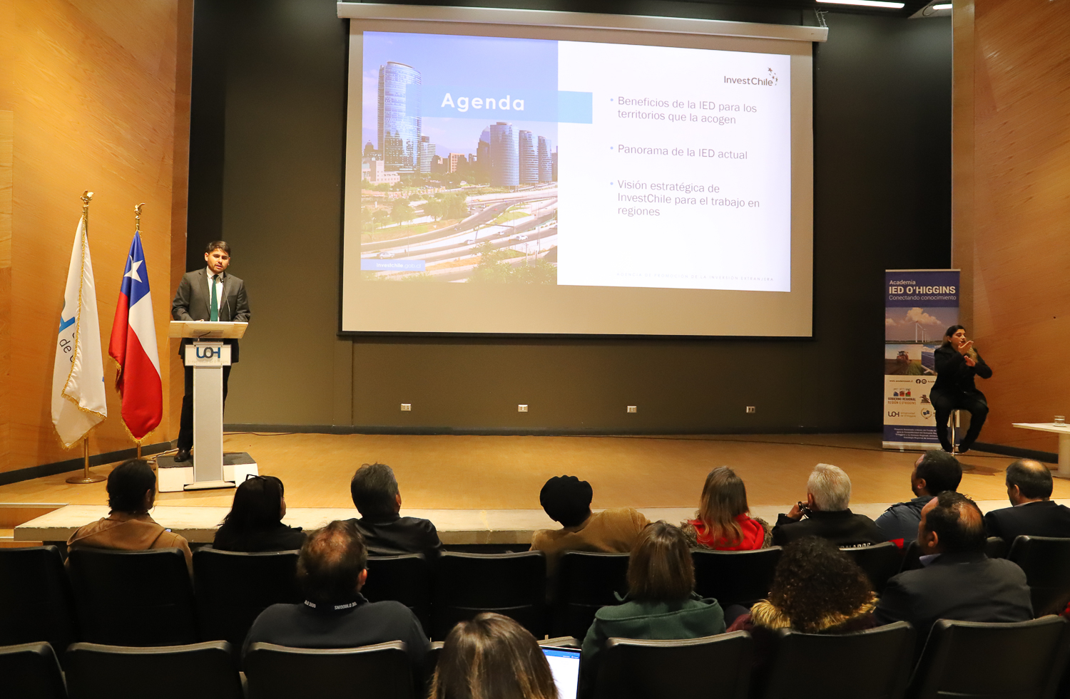 Este martes 04 de octubre,  en la Universidad de O`Higgins (UOH), se desarrolló el seminario internacional: “Oportunidades de Inversión Extranjera Directa (IED) para la Región de O´Higgins”, organizado por la Academia IED, realizado en el marco del proyecto FIC: Academia IED para promover y escalar la innovación.